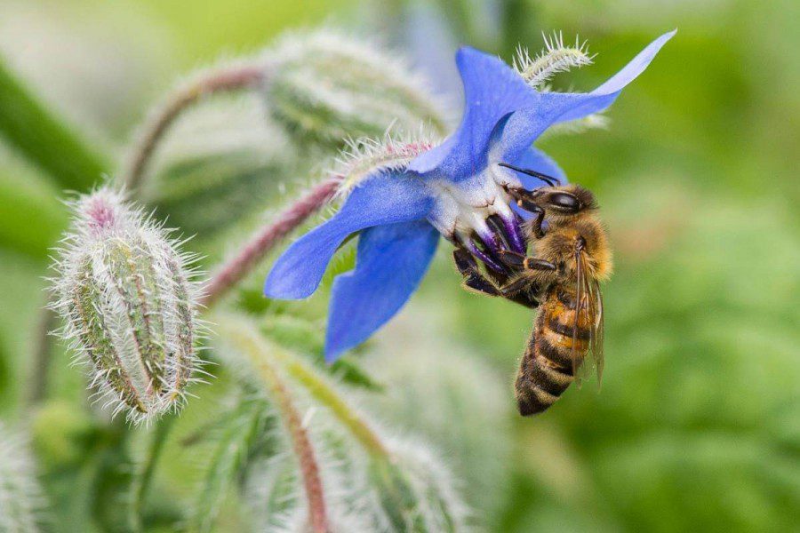 شگفت آور است که زنبورها میتوانند گلهای دارای هاله آبی را با گلهایی که فاقد آن هستند، حتی اگر دو گل یکسان باشند، تمیز دهند.